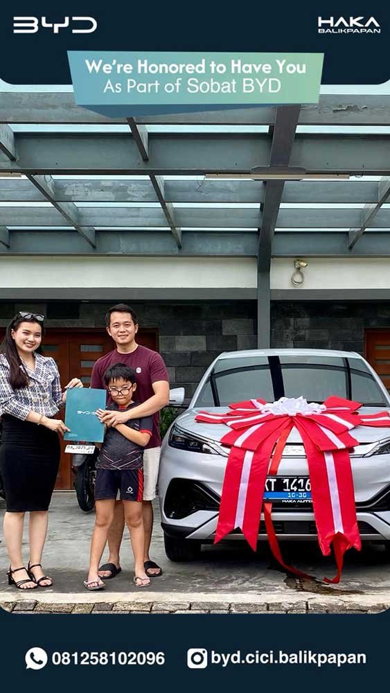 Dokumentasi penyerahan kendaraan kepada konsumen yang telah mempercayakan pembelian mobil Listrik BYD pada kami.