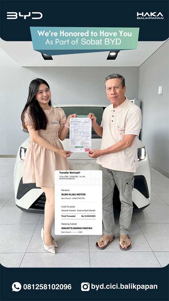 Read MoreDealer BYD Balikpapan merupakan distributor resmi penjualan mobil listrik terkemuka, menghadirkan showroom mobil listrik terbaik di Kalimantan Timur. Komitmen kami untuk menyebarkan teknologi mobil listrik (EV) ke masyarakat di tanah air.